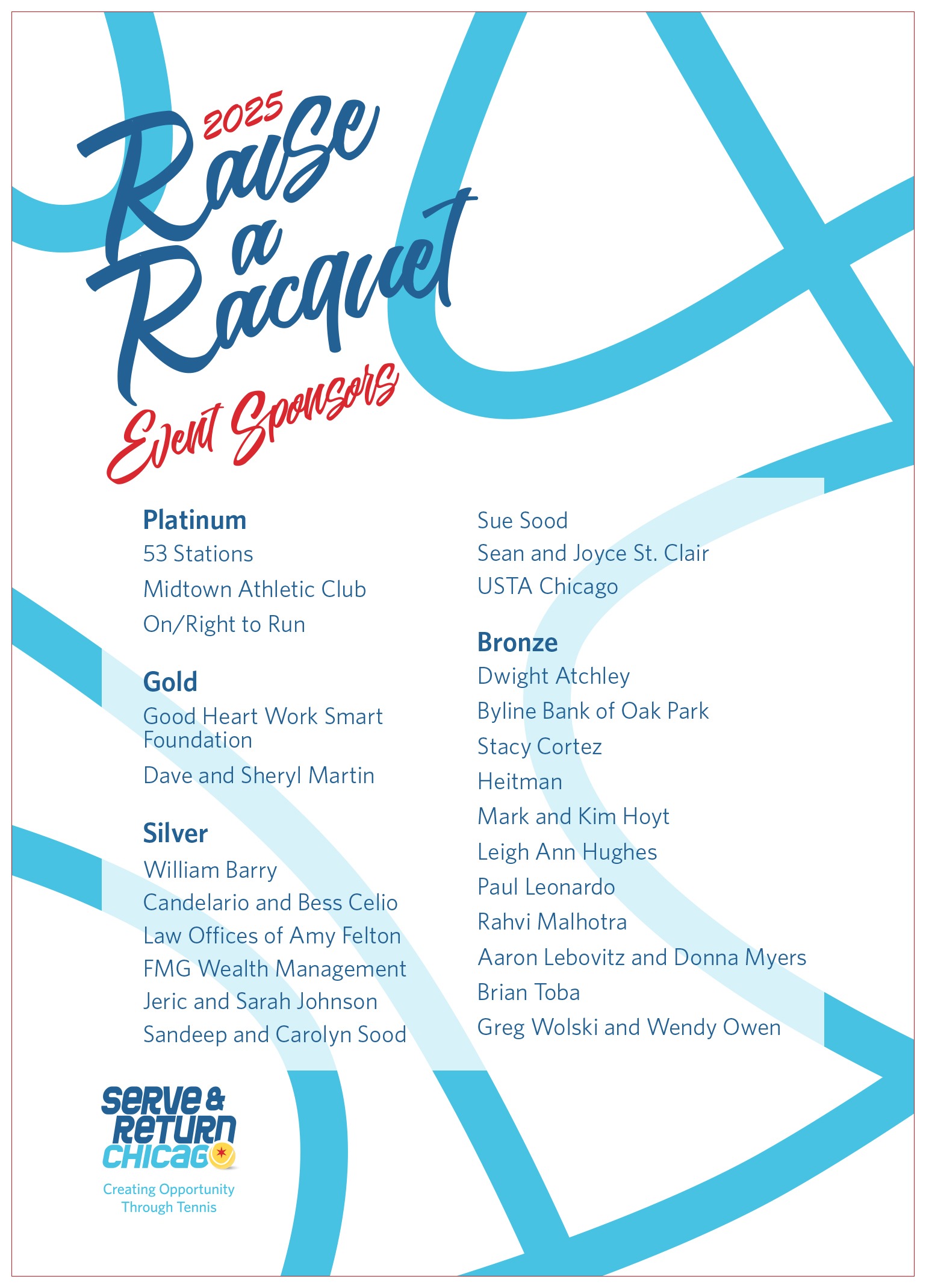 Sponsorship Opportunities for our 2026 Raise a Racquet Event!